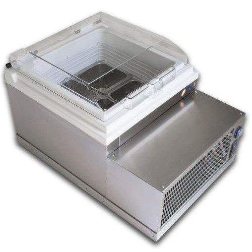 Refrigerated gelato display for storing gelato/ice cream, food, yogurts. It allows you to optimise the space. The lid can be rotated, for a more comfortable use. This is a very versatile equipment with a temperature control system that allows you to set positive and negative temperatures. This way you can store and preserve many different products such as granita/slush, sorbets, fruit and milk, gelato and ice cream, fruit salads, drinks, etc. The machine is also energy saving and thanks to the static cooling system you can reduce the cost of work.
