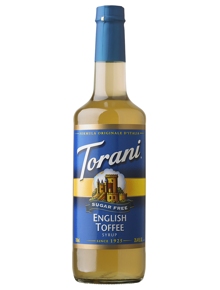 A classic British confection! A smooth, creamy texture and buttery, toffee aroma sets Torani Sugar Free English Toffee Syrup apart. A perfect reproduction of the well-loved confection without the calories, it makes a great addition to lattes, iced coffees, and milkshakes.