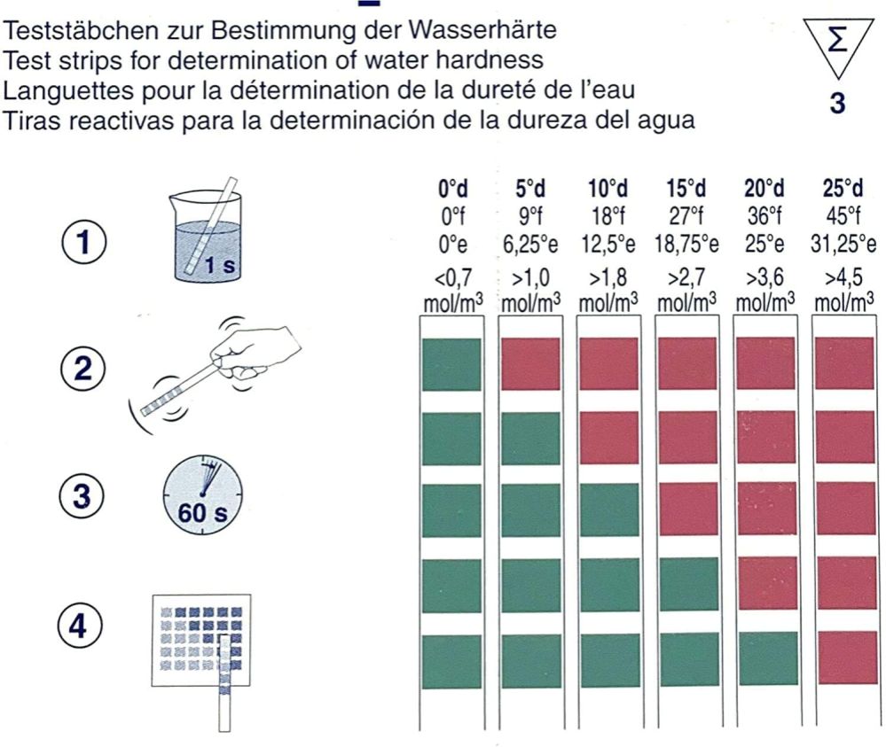 Teststickor för vattenhårdhet AQUADUR, 100st