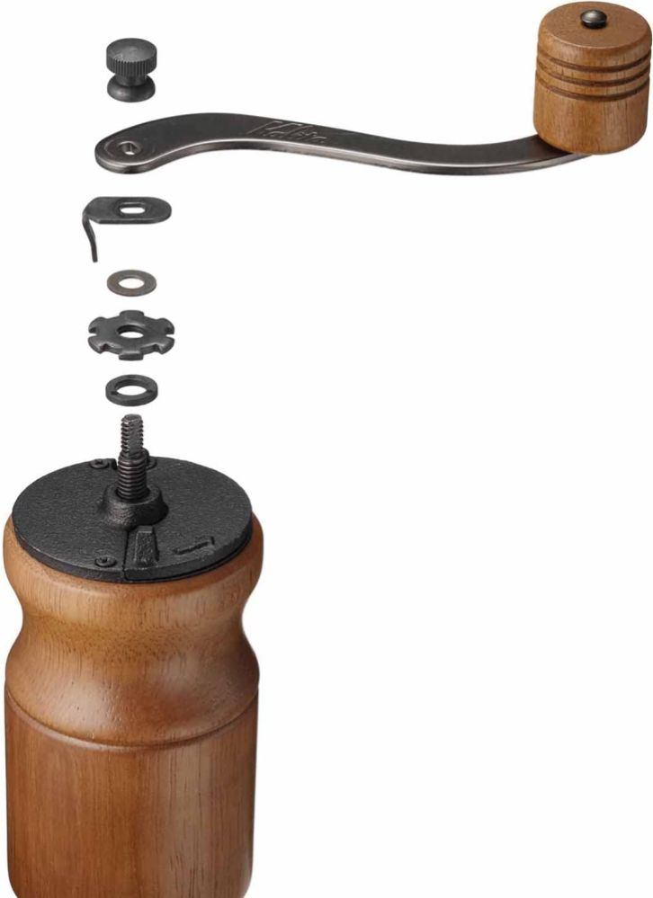 This hand-operated grinder has a simple design, to grind coffee you turn the wooden knob. Perfect to take with you on camping holidays or various activities where you want freshly ground coffee, but no access to electricity. The grinding size can be easily adjusted by turning the adjustment screw. You can get both finely ground and coarsely ground coffee. We recommend it mostly for use with pressure jugs and drip coffee makers. The grinder fits well in the hand thanks to its round shape.