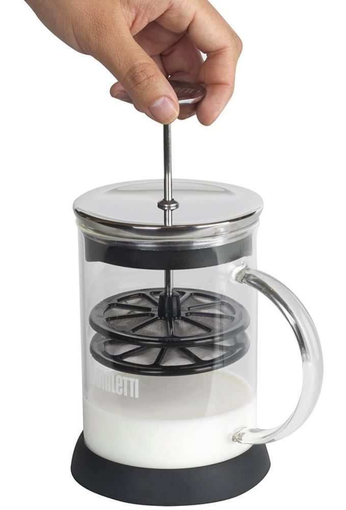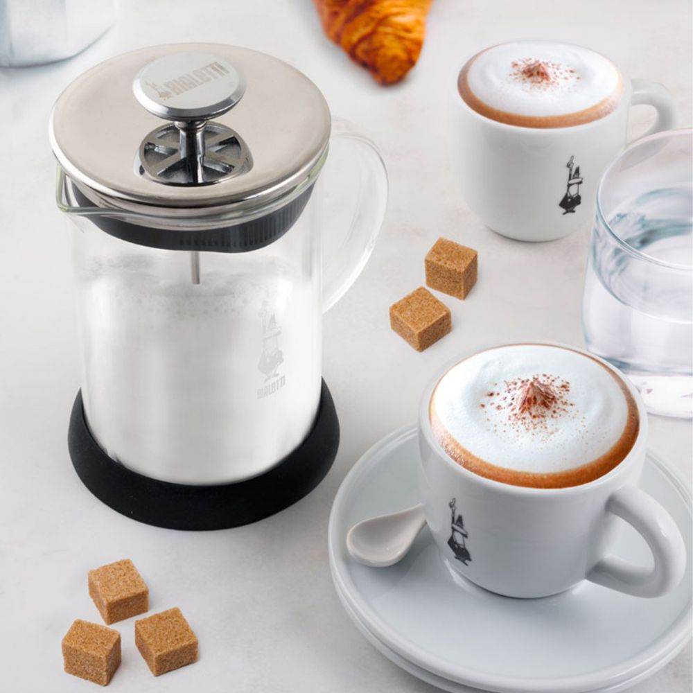 Yielding a rich milk froth in seconds, the manual Bialetti Cappuccinatore is the simplest and most efficient way to produce rich, creamy milk for your favourite cappuccino, latte or hot chocolate. This manual milk frother is fitted with a patented double-disk whip to perfectly froth cream.