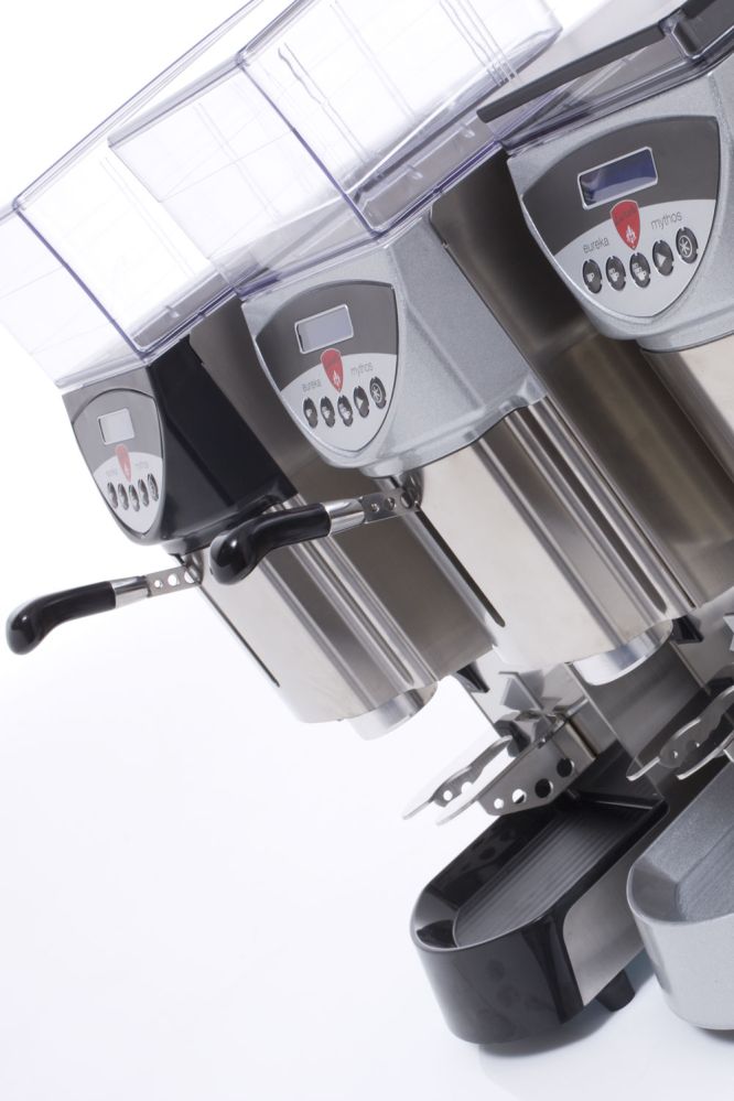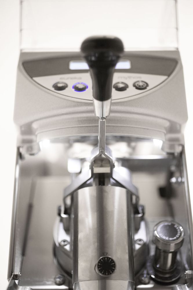 Mythos is a direct grinding, titanium grinder. Equipped with micrometer quick adjustment for different grinding degrees. Space for 3.2 kg coffee beans in the bean container.