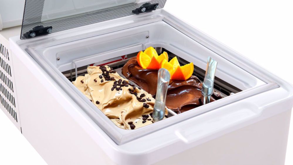 Mini Cream is a modern, high quality Italian product. Mini Cream is suitable for restaurants, cafes and hotels where you want to serve scoop ice cream eg. at buffets. Also suitable for trade fairs, events, catering etc. The Mini Cream is energy efficient, Quiet and easy to clean and has a flat display hood entirely in plexiglass. Mini Cream is available in two models; for 2 or 3 flavors. Can also be used to cool smaller products, such as stick ice creams, serving ice creams etc.