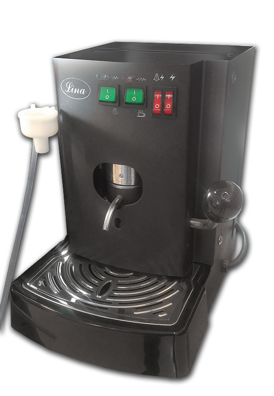 Fast, small espresso machine with manual water refill. E.S.E. system. Suitable for small café, conference room or home.A decorative fast, small espresso machine in stainless steel. It is equipped with a steam tube.